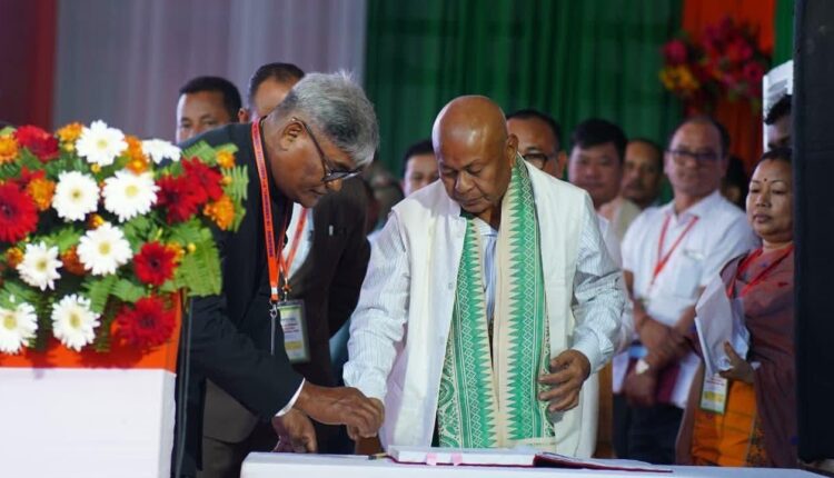 Kokrajhar: The Swearing-in Ceremony of the 5th Executive Council of the Bodoland Territorial Council (BTC) was held today at the BTC Secretariat Field, Bodofa Nwgwr, Kokrajhar. Assam Chief Secretary Dr. Ravi Kota administered the oath of office in the presence of Governor Lakshman Prasad Acharya and Chief Minister Dr. Himanta Biswa Sarma.