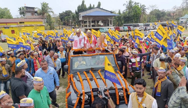 Meanwhile, in Dibrugarh, Manoj Dhanwar, a youth leader from the tea community, filed his nomination papers as an AAP candidate. Thousands of supporters gathered at Nirmali village ground near City College in Dibrugarh to accompany Dhanwar to the district commissioner’s office, where he submitted his nomination papers amidst fervent enthusiasm.