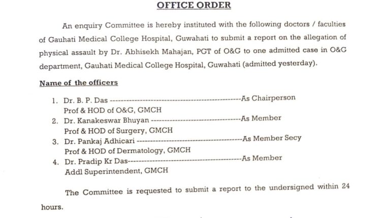 Guwahati: An enquiry committee has been swiftly formed at the Gauhati Medical College Hospital (GMCH) following allegations of physical assault on a patient by Dr. Abhisekh Mahajan, a Post Graduate Trainee (PGT) in the Obstetrics and Gynecology (O&G) department. The committee, comprised of esteemed doctors and faculty members of GMCH, has been tasked with investigating the incident. Their mandate includes submitting a report on their findings within 24 hours.