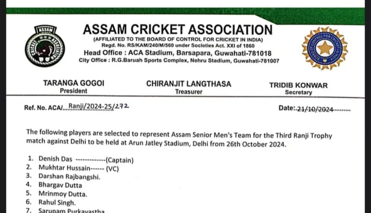Guwahati: The Assam Cricket Association has announced the squad for the Senior Men’s Team set to face Delhi in their third Ranji Trophy match. The game is scheduled from October 26, 2024, at the Arun Jaitley Stadium in Delhi.