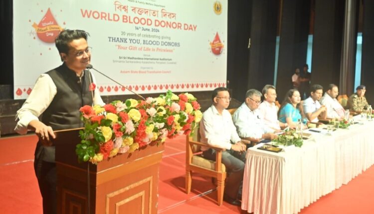 Guwahati: The Assam State Blood Transfusion Council (ASBTC) observed World Blood Donor Day on June 14, 2024, at Sri Sri Madhabdeva International Auditorium, Kalakshetra. The slogan for this year’s event was “20 years of celebrating giving: Thank you, blood donors!”