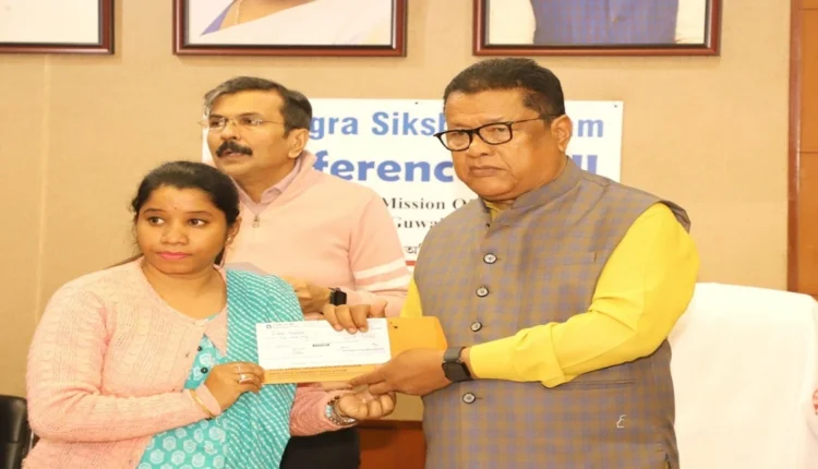 Education Minister Dr. Ranoj Pegu, who attended as the Chief Guest, handed over the cheques to the families. The programme also saw the presence of other dignitaries, including Dr. Om Prakash, IAS, Mission Director of Samagra Shiksha, and Sanjoy Dutta, ACS, Executive Director of Samagra Shiksha.