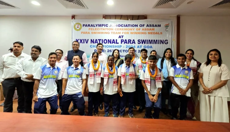 Guwahati: The Paralympic Association of Assam (PAA) celebrated the achievements of Assam’s para-swimming medalists from the National Para-Swimming Championship at a felicitation event held at the Staff College in Khanapara, Guwahati. Dignitaries in attendance included PAA President Mr. Chandan Baruah, Vice President Mrs. Dorothy Suchiang, General Secretary Mr. Rajib Dey, Independent Director of Assam Petrochemicals Ltd. Mr. Jitu Talukdar, and Chief Manager of UCO Bank’s Zonal Office, Smt. Kukila Borkotoky.