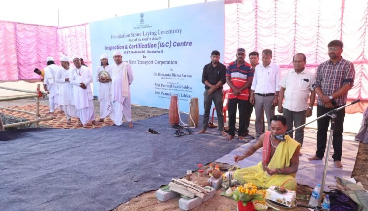 Guwahati : Assam took a significant step forward in transportation safety as Chief Minister Dr. Himanta Biswa Sarma and Transport Minister Parimal Suklabaidya laid the foundation stone for an Inspection and Certification (I&C) Centre at ISBT Betkuchi on September 28, 2023. This innovative project, funded by the Ministry of Road Transport and Highways (MORTH) and executed by the Assam State Transport Corporation, is the first of its kind in the state.