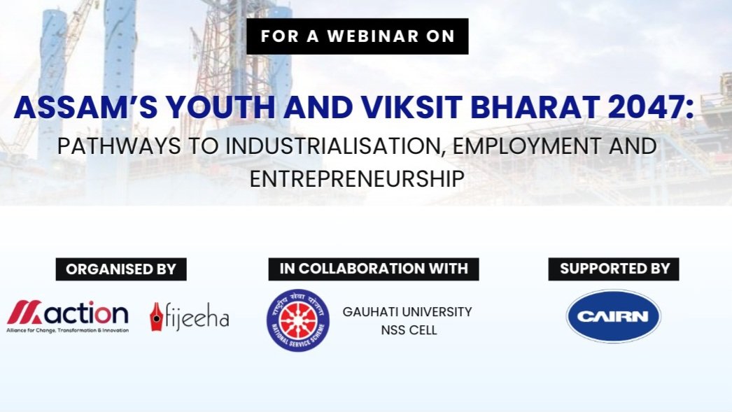 The webinar, titled “Assam’s Youth and Viksit Bharat 2047: Pathways to Industrialisation, Employment and Entrepreneurship”, was organised by ACTION NGO and the Forum for Indian Journalists on Education, Environment, Health & Agriculture (FIJEEHA), in collaboration with the NSS Cell of Gauhati University, with support from Cairn Oil & Gas.