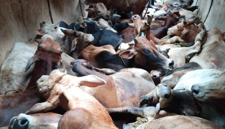Sonapur: On July 4, Sonapur police, located near Guwahati, intercepted an oil tanker and discovered cattle being smuggled inside. The police recovered a total of 36 cattle, out of which 11 were found dead. Two individuals have been apprehended in connection with the incident.