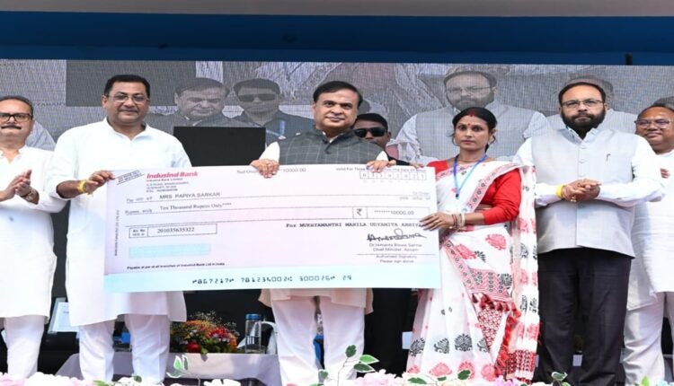 Nagaon: As part of the Mukhyamantri Mahila Udyamita Abhiyan (MMUA), Chief Minister Dr. Himanta Biswa Sarma distributed cheques to 26,585 beneficiaries from the Nagaon-Batadrava Legislative Assembly Constituency, including 19,628 rural and 6,957 urban women, at a public meeting held at Nehrubali, Nagaon.
