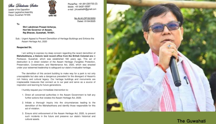 Guwahati: Leader of Opposition in the Assam Legislative Assembly, Debabrata Saikia, has written to Governor Laxman Prasad Acharya, expressing strong opposition to the demolition of Mahafezkhana, a 160-year-old British-era land record office in Panbazar, Guwahati.