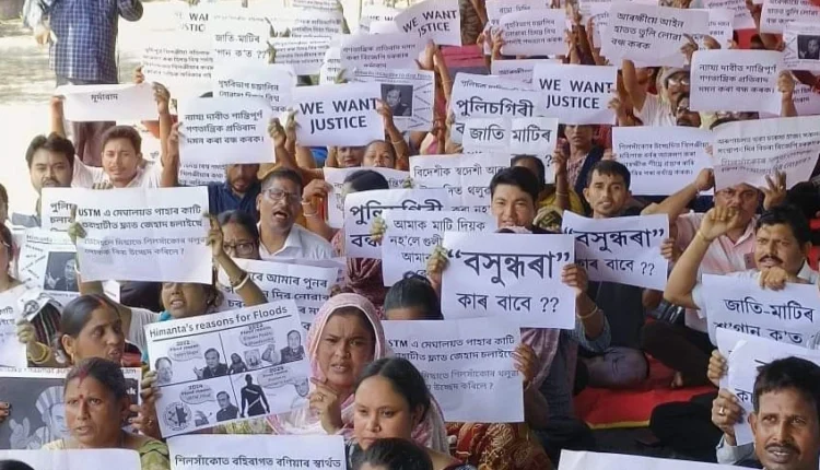 Guwahati: Families evicted from Silsako Beel have continued their protest, gathering once again at the Chachal protest site on Thursday. Their demands remain the same compensation and rehabilitation, which they claim the government promised at the time of their eviction.