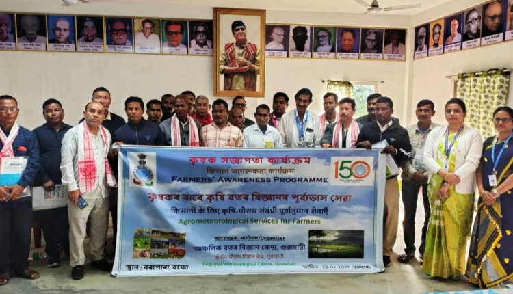 Guwahati: The Regional Meteorological Centre, Guwahati, organized a Farmers’ Awareness Programme on Agrometeorological Services in Barapara, Boko, on 22 January 2025. Local farmers participated and interacted with meteorologists to learn about weather-based farming practices.