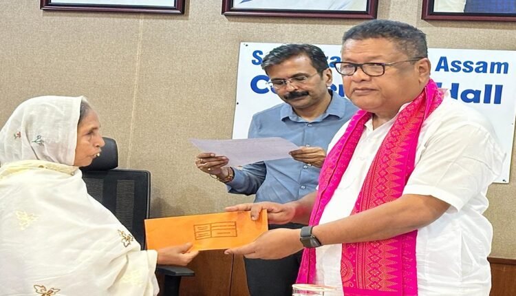 The solemn ceremony was held in the Conference Hall of the State Mission Office, Samagra Shiksha, Assam. The programme was graced by Dr. Ranoj Pegu, Education Minister of Assam, as the Chief Guest. He personally handed over the cheques to the bereaved families in the presence of several dignitaries including Dr. Om Prakash, IAS, Mission Director; Sanjoy Dutta, ACS, Executive Director; and Khanindra Das, Officer on Special Duty. Officials, staff members, and media representatives were also present.