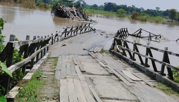 Majuli: The wooden bridge connecting Majuli to the greater Bhakatchapri area was washed away by the swiftly rising Brahmaputra waters on Tuesday. This bridge served as the sole transportation link for the people in the region. With the bridge gone, there’s no immediate alternative route for travel in the larger area.