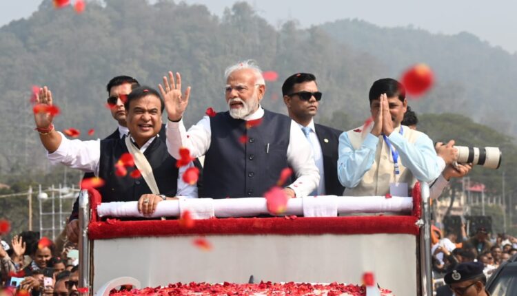 Guwahati: Through the virtual mode, ceremonially inaugurated and laid the foundation stone of projects worth a total of Rs. 11,600 crores at a ceremony held at the College of Veterinary Science Playground in Guwahati. The Prime Minister inaugurated the four-laning of national highway from Biswanath Chariali to Gohpur built at a cost of Rs. 1,451 crores and the four-laning of national highway from Dolabari to Jamuguri that was built at a projected cost of Rs. 592 crores. These apart, the Prime Minister laid the foundation stones of the Rs. 498-crore Maa Kamakhya Access Corridor (Divyalok Pariyojana), the Rs. 3,250-crore infrastructure development project of Guwahati Medical College and Hospital, the Rs. 832-crore upgradation of Nehru Sports Stadium project, the construction of Karimganj Medical College to be built at a cost of Rs. 578 crores, the construction of a state-of-the-art Chandrapur Stadium to be built at a cost of Rs. 300 crores, the widening of road connecting Lokapriya Gopinath Bordoloi International Airport to be built at a cost of Rs. 358 crores, the upgradation of 43 roads, including 38 bridges, at a cost of Rs. 3,444 crores and the construction of the Unity Mall at a cost of Rs. 297 crores.