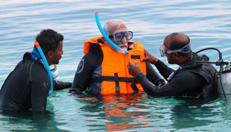 PM Modi posted pictures of his undersea exploration on X and shared his “exhilarating experience” of the sojourn in the islands located in the Arabian Sea.