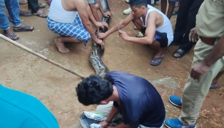 The python was released in the deep jungle of the Amsang Wildlife Sanctuary later in the evening. The forest department suspects that the python ventured out of the deep forest in search of food.