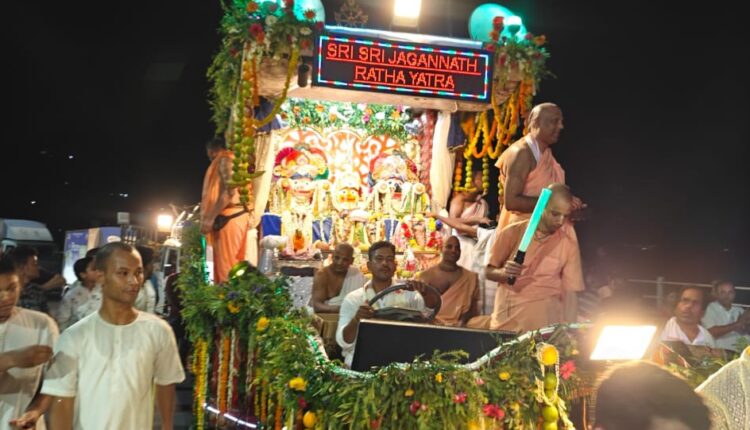 Guwahati: The Hare Krishna Movement in Guwahati celebrated the grand Sri Jagannath Ratha Yatra with great enthusiasm and devotion on Sunday. The procession began at the Railway North East Frontier Office and ended at the Ropeway in Kachari.