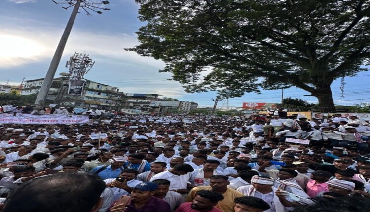 Tinsukia: Assam’s tea community staged a massive protest in Tinsukia district, demanding higher daily wages, land ownership rights, and recognition of Scheduled Tribe (ST) status.