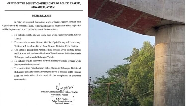 Guwahati: Due to the upcoming foundation work for the Cycle Factory Flyover, traffic rules in the area will change starting from April 23, 2025, until further notice.